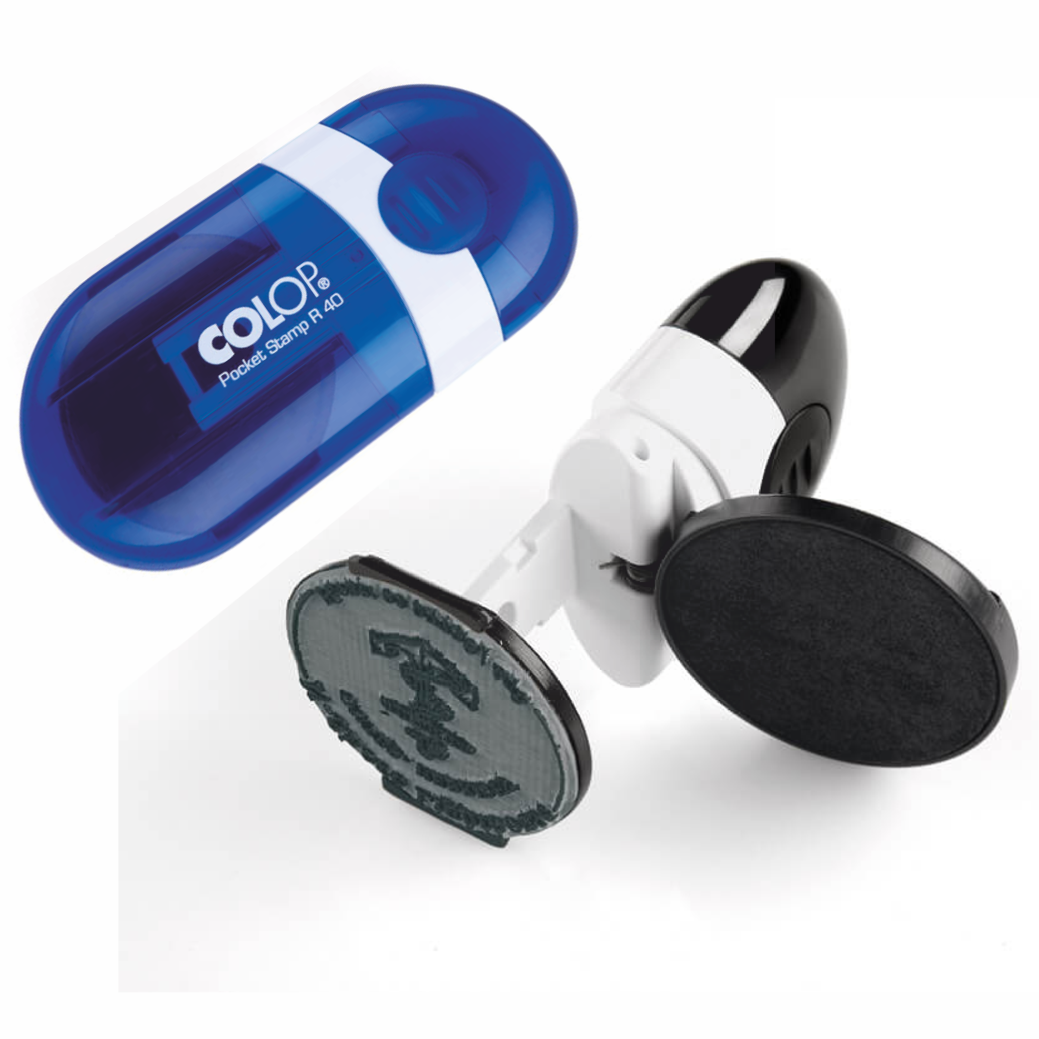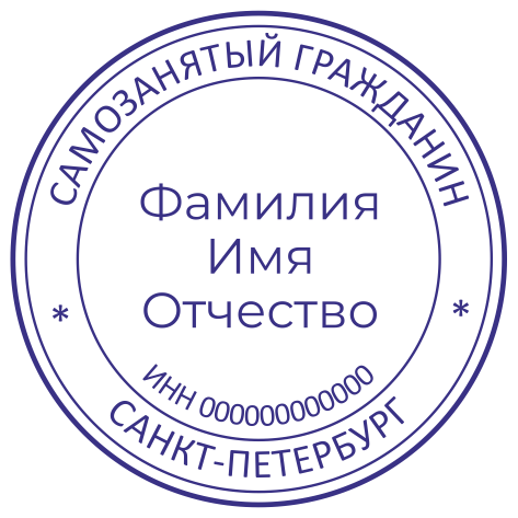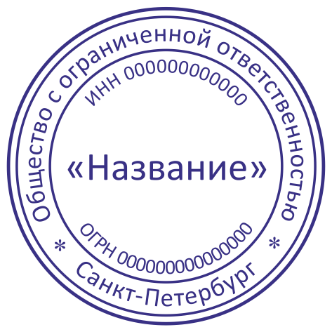 Диаметр круглой печати 38-41мм. Цвет чернил синий или голубой.
