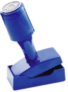 Новый штамп на автоматической оснастке со встроенной штемпельной подушкой (заправленной чернилами). Удобный вариант для многократного и быстрого проставления оттисков на бумагу.